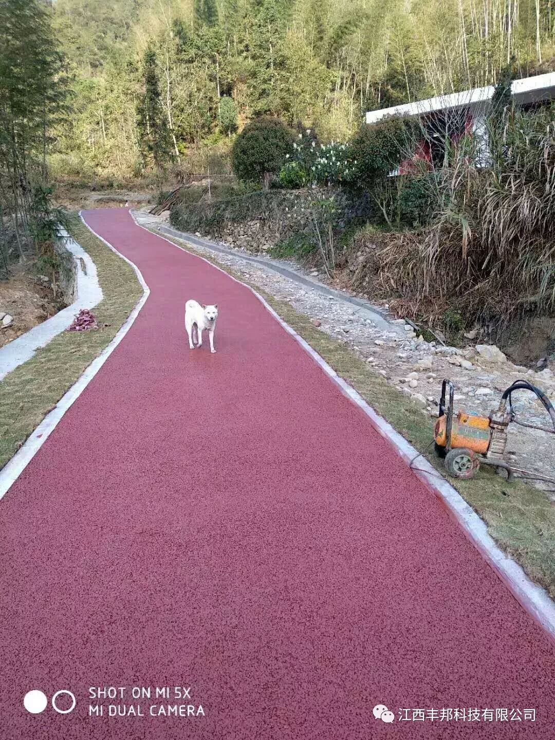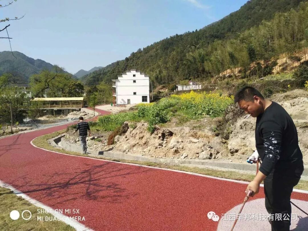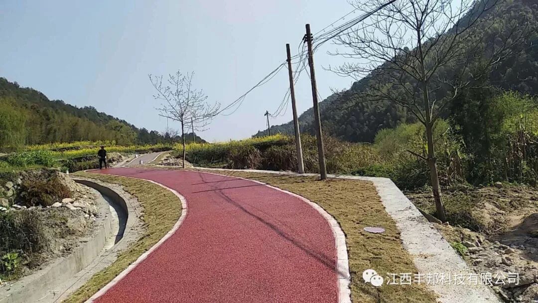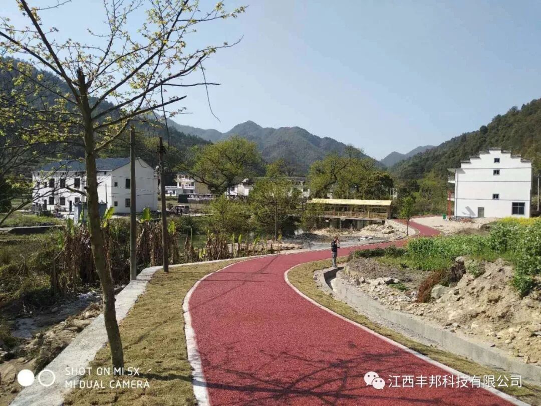 上饶铅山县太源畲族乡水美村休闲自行车、人行步道的透水路面施工材料全部由我们江西丰邦科技有限公司提供。下面是客户反馈的成品图。